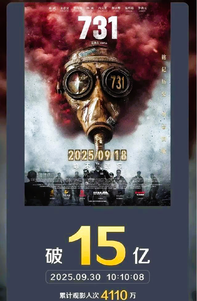 从观众反馈来看,《731》凭借历史题材的厚重感与演员的细腻表演收获口碑,有观众在社交平台晒出四刷票根,配文 “每一次看都有新的震撼,姜武饰演的石井四郎太有代入感,最后片尾的真实史料片段看一次哭一次”;还有历史爱好者整理出影片中的史实细节,“冻伤实验、细菌注射等情节都有史料依据,剧组真的很用心”。紧随其后的是 9 月 29 日上映的《志愿军:浴血和平》,上映 4 天票房达 2.13 亿,排片占比 20.66%,单日票房环比上涨 12%,片方于 10 月 2 日发布 “冰雕连” 幕后花絮,展示演员在零下 20℃的环境中拍摄的场景,演员们穿着单薄的军装,在雪地中完成冲锋、卧倒等动作,引发观众情感共鸣,“向志愿军战士致敬,这部电影值得一看”。